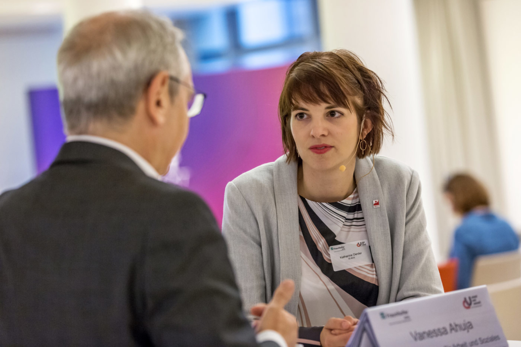 Dies bedeutet aber auch: Die Transformation der Gesellschaft wird den Arbeitsmarkt nachhaltig verändern, und davon werden insbesondere KMU und weniger qualifizierte Menschen womöglich negativ betroffen sein. Vanessa Ahuja, Abteilungsleiterin im Bundesministerium für Arbeit und Soziales (BMAS), legte dar, dass das seit dem 1.1.2019 in Kraft getretene Qualifizierungschancengesetz die Weiterbildungsberatung der BA stärke. Darüber hinaus habe Bundesarbeitsminister Hubertus Heil den Entwurf eines „Arbeit von morgen Gesetzes“ in Auftrag gegeben, das den Menschen mehr Schutz und Sicherheit im Wandel bieten soll.