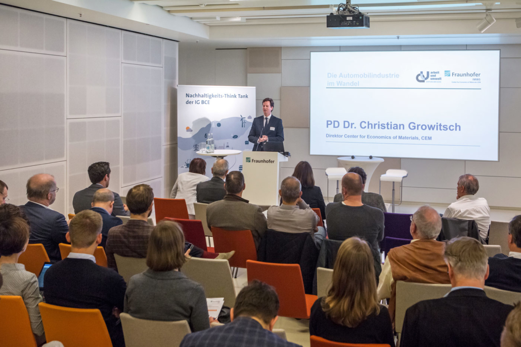 Die Auswirkungen und Perspektiven für Beschäftigung und Wertschöpfung in der Automobil- sowie Zulieferindustrien standen im Zentrum einer gemeinsamen Konferenz der Stiftung Arbeit und Umwelt der IGBCE und des Fraunhofer Center for Economics of Materials CEM, die am 16. Oktober in Berlin stattfand.