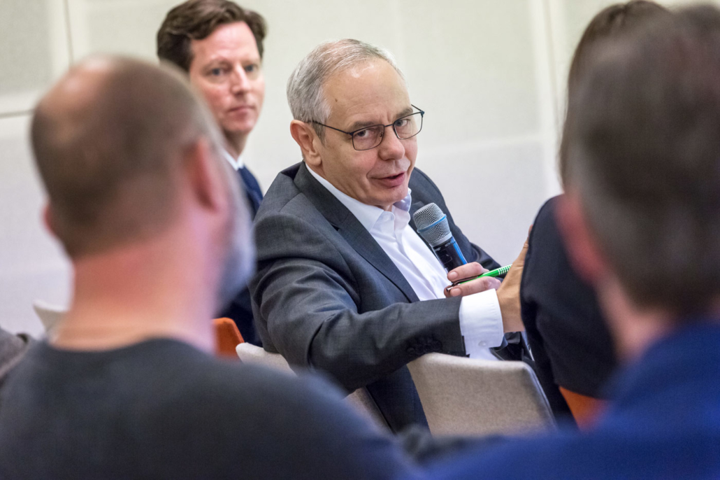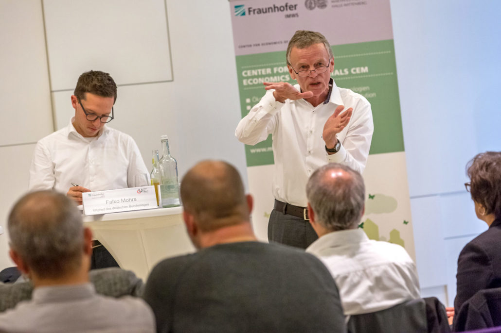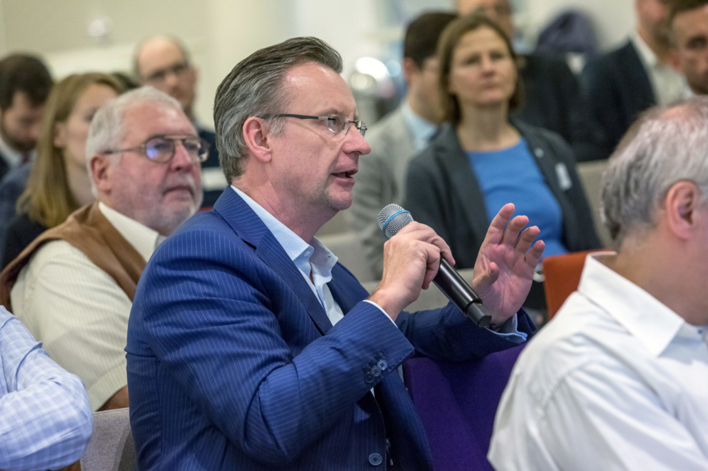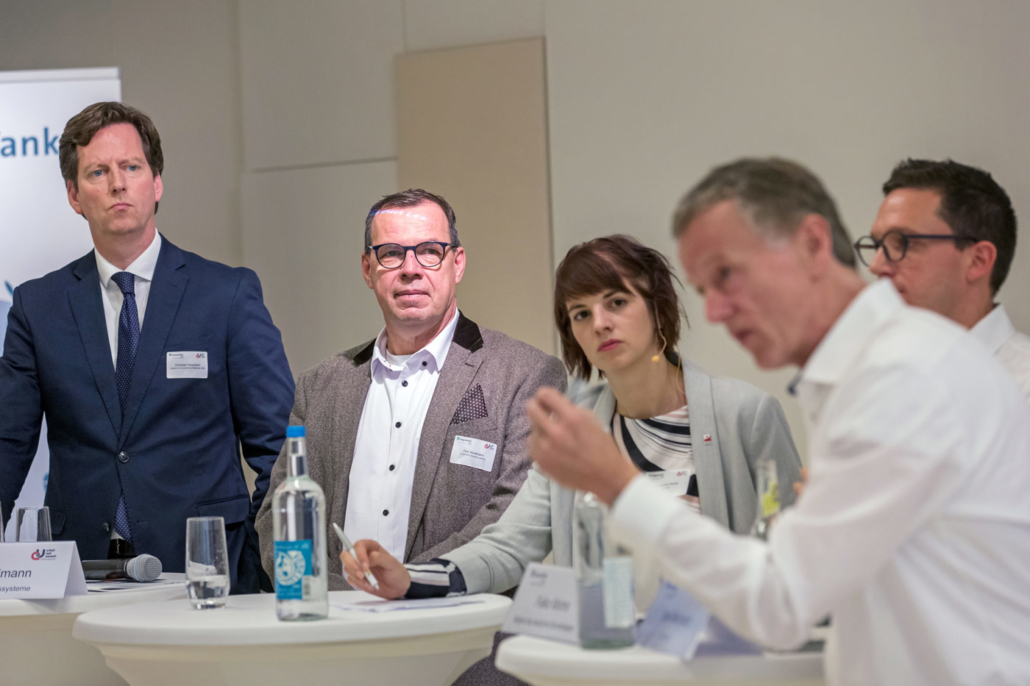 Im Rahmen eines Podiumsgespräches unterstrich Dr. Christian Growitsch, Direktor des Fraunhofer Center for Economics of Materials, die enorme Bedeutung der deutschen Automobilindustrie für die Volkswirtschaft. Sie gehöre noch vor Maschinenbau und der Chemieindustrie zum „Kern der deutschen Industrie“ und stehe vor einer gewaltigen Transformationsaufgabe.“ Für Uwe Meinhardt, Abteilungsleiter Grundsatzfragen bei der IG Metall sind u.a. die Qualifizierung und Weiterbildung zentrale Zukunftsthemen. Zudem verwies er auf das Problem, dass KMU, die neue Produktideen hätten, für die es aber gegenwärtig noch keinen Markt gäbe, von den Banken keine Finanzierung erhielten. Falko Mohrs, MdB der SPD Bundestagsfraktion hob hervor, dass die Hersteller von Automobilen, aber auch von Produkten wie dem Thermomix, nicht nur am eigentlichen Produkt verdienten, sondern am Service. Deshalb sei es für die Unternehmen so wichtig, zu begreifen, dass sie in Bezug auf die Digitalisierung sowohl ihre Geschäftsprozesse als auch ihre Geschäftsmodelle überdenken müssten. Dabei müsse die Qualifizierung und Absicherung der Arbeitnehmerinnen und Arbeitnehmer im Fokus stehen. Dirk Nordmann, Betriebsratsvorsitzender bei ContiTech-Anstriebssysteme, legte dar, dass die Antriebstechniken neue Anforderungen an die Beschäftigten generieren würden. Dafür habe man bei Conti eine Qualifizierungsgesellschaft gegründet, die der BR mit initiiert hätte.