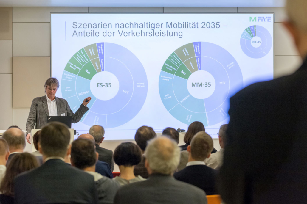 Wie die Zukunft des Verkehrssektors insgesamt aussehen könnte, zeigte Dr. Wolfgang Schade von M-Five anhand von zwei Zukunftsszenarien zu nachhaltiger Mobilität. Die vorgestellte Studie, die im Auftrag der Hans-Böckler-Stiftung entstanden ist, zeigt, dass insgesamt bis zu 300.000 neue Arbeitsplätze durch die Transformation entstehen können.