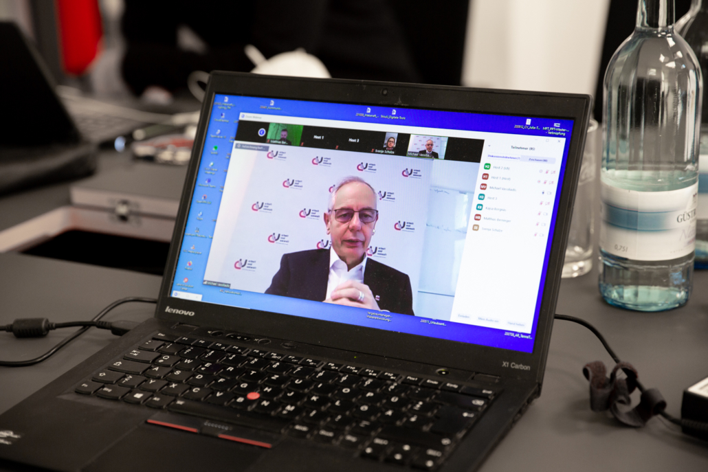 Matthias Berninger legte in seinem Vortrag den Schwerpunkt auf Innovation und Innovationsfähigkeit. Die Corona-Krise bezeichnete er als Reallabor, in dem sich gezeigt habe, was durch einen Rückgang der Produktion zwar an Dekarbonisierung zu erreichen sei, aber welche negativen sozialen Auswirkungen eine Deindustrialisierung nach sich ziehen würde. Er sieht die Regulierungsfähigkeit der EU als große Stärke an, die allerdings Innovation nicht ausbremsen sollte, sodass die Unternehmen mit ihren innovativen Ideen ins außereuropäische Ausland gehen. Um bis 2030 klimaneutral zu produzieren, was Bayer als Wettbewerbsvorteil für sich definiert hat, habe sein Unternehmen ein Anreizsystem mit definierten Zielen für messbare Ergebnisse eingeführt, deren Erreichung oder Vorschläge für deren Erreichen bei den variablen Lohnanteilen belohnt würden.